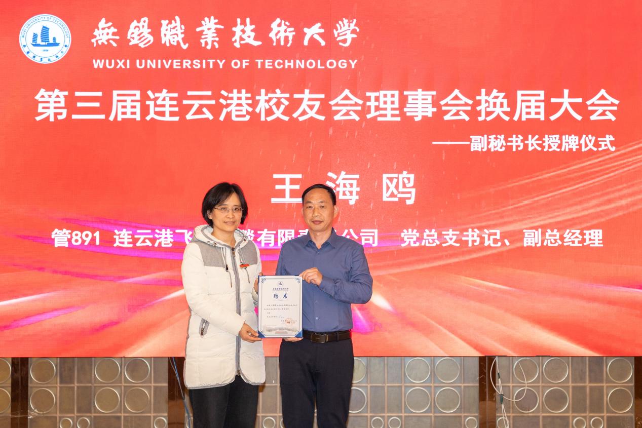 校友办主任房磊宣读了对第三届连云港校友会理事会的批复,校领导依次为新任班子成员授牌,现场气氛热烈、情谊融融。