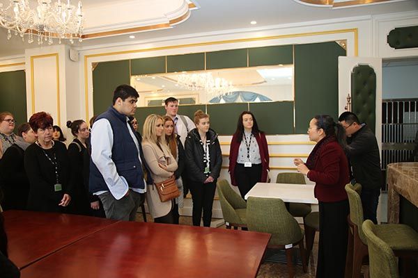 师生代表团参观了我校智能制造工程中心、图书馆、国际教育学院、外语与旅游学院酒店管理专业实训室、无锡名人苑,对我校优美的校园环境及先进的实训设备留下了深刻印象。在酒店管理专业实训室参观期间,代表团师生与中国学生开展了以中国传统餐具使用礼仪为主题的文化交流体验活动,零距离地体验中国传统餐饮文化,这既为爱尔兰师生打开了一扇了解中国的窗口,也让中国学生更加深入地认识祖国的传统文化,增强了民族自豪感,活动中双方院校师生热烈交流,对未来合作充满期待。
