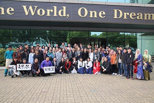 中外学生在国际交流中心合影