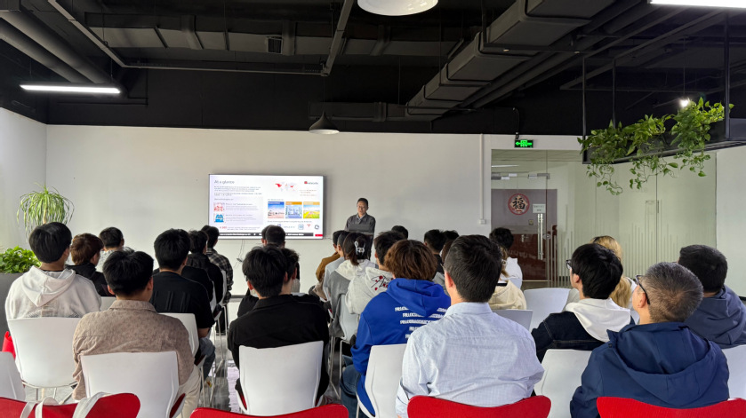 首先,应永保厂长热烈欢迎我院师生的到来,他表示看到母校的师生们,感到十分非常高兴和亲切。一方面作为母校优秀校友,他深情回顾了在校期间的学习经历,表达了对母校的感恩,又以学长身份,分享了职业发展经验,“当年在学院材料实验室的实践经历,为我打下扎实的专业基础。”他通过展示企业参与的国产大飞机部件热处理案例,建议学弟学妹们关注行业三大趋势:绿色热处理工艺革新、智能化生产系统迭代、复合型技术人才需求。另一方面作为企业管理者,他介绍了公司全球战略布局,并围绕企业发展历程、核心业务板块及人才培养体系进行详细介绍。他叮嘱同学们:职业选择要锚定行业发展趋势,既要有立足当下打磨技术的耐心,也要保持对行业动态的敏锐度。