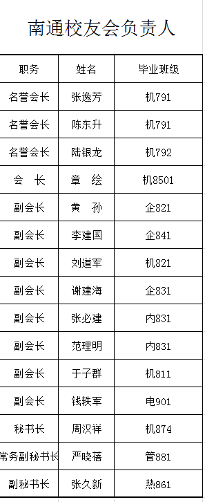 新一届南通校友会领导班子