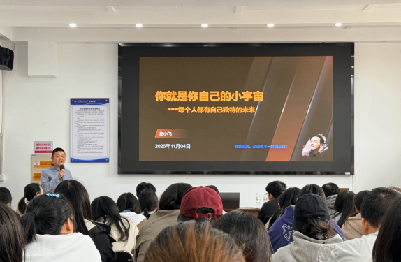 原财务40831班优秀校友、现任无锡博识盾管理咨询有限公司联合创始人暨“业财税法智”项目负责人赵小飞应邀返校,作题为《你就是你自己的小宇宙——每个人都有自己独特的未来》的主题分享。赵小飞以自身经历为脉络,讲述了从跑腿“办证小哥”到独当一面的财务掌舵人的职业蜕变之路。他指出,每个人都有自己独特的价值,不必盲目追随他人脚步,关键在于认清自己,对行业趋势的洞察与自身优势的清晰判断,找到真正热爱的事物并持续深耕。财经人不妨从了解时事政策,关心财经动态开始,将个人发展融入国家需求,在服务社会中实现价值升华。现场同学深受启发,纷纷表示要以更开放的心态面对未来挑战,在不断尝试中点亮属于自己的小宇宙。