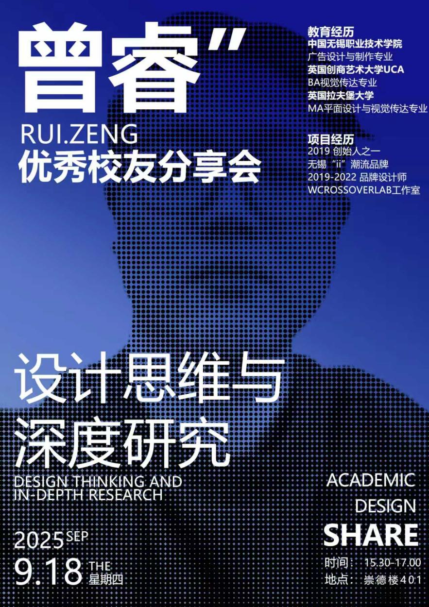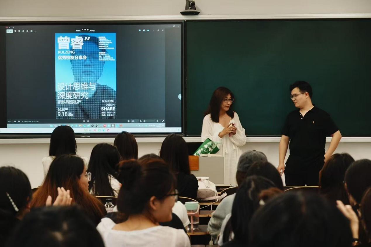 2025年9月18日下午,我校设计艺术学院品牌活动“母校有约”校友分享会在崇德楼如期举行。本次活动特邀我院优秀校友英国拉夫堡大学硕士毕业生曾睿同学返校,为25级视觉传达设计与艺术设计专业的新生带来了一场题为“设计思维与深度:从技能到洞察的跨越”的精彩讲座。
