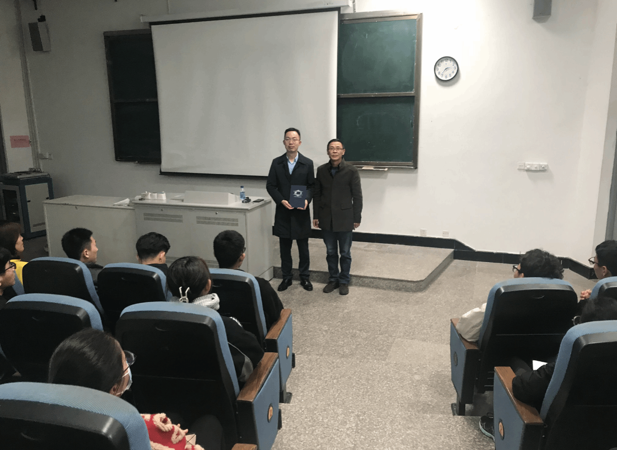 讲座由分院学生办主任丁正荣老师主持,180余名师生到场聆听。刘海东以《汽车行业的前景与发展》为题,做了一场精彩报告。他结合自己的大学生活、就创业经历,从在校期间社会实践能力的培养、对于走向社会应聘技巧和用人单位的关注点、汽车专业几页方向、新能源汽车的发展前景分析等几个方面做了精彩的交流。他叮嘱学弟学妹,做人要诚实、要认真踏实、善学、有职业道德,要提升自己的核心竞争力,在校学好专业课,沉淀技术,为同学们指明了大学的奋斗目标。讲座最后汽车与交通学院党总支郭再泉书记为刘海冬校友颁发了校友聘书。