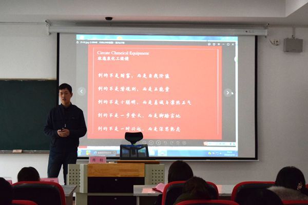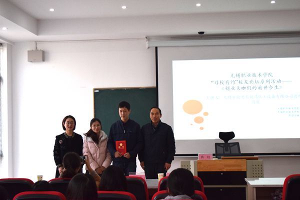 12月18日,“母校有约”校友论坛系列活动第六场在国际交流中心406报告厅隆重举行。2012级优秀校友、无锡市欣逸东制药化工设备有限公司总经理肖柱应邀回到母校,和学弟学妹们分享了题为《创业大咖们的前世今生》的报告。外语与旅游学院党总支书记江铭老师,创就业中心主任朱佳艺老师以及外语与旅游学院80余名学生参加了活动。