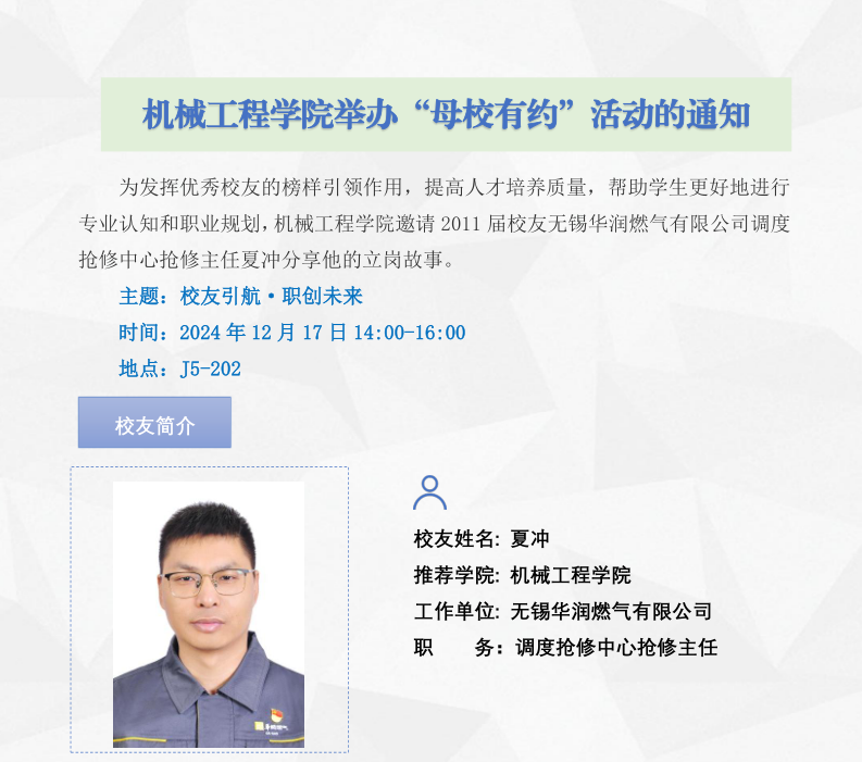 机械工程学院“母校有约”活动通知:校友引航·职创未来