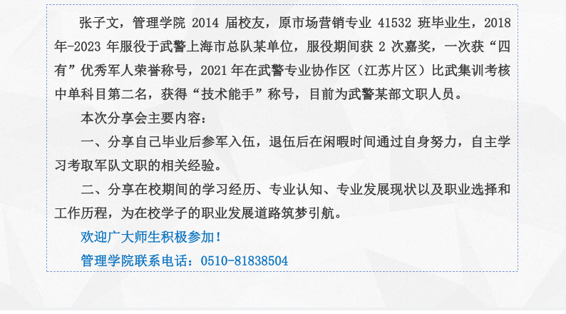 管理学院“母校有约”校友活动通知:校友领航 职创未来