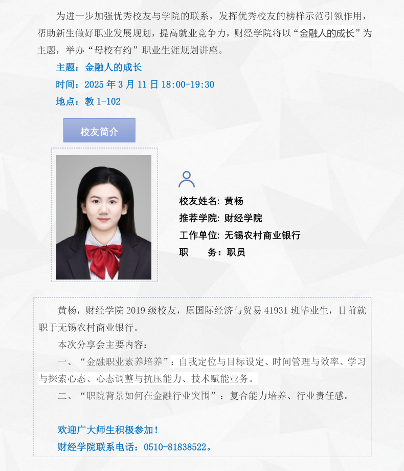 财经学院举办“母校有约”校友活动的通知:金融人的成长