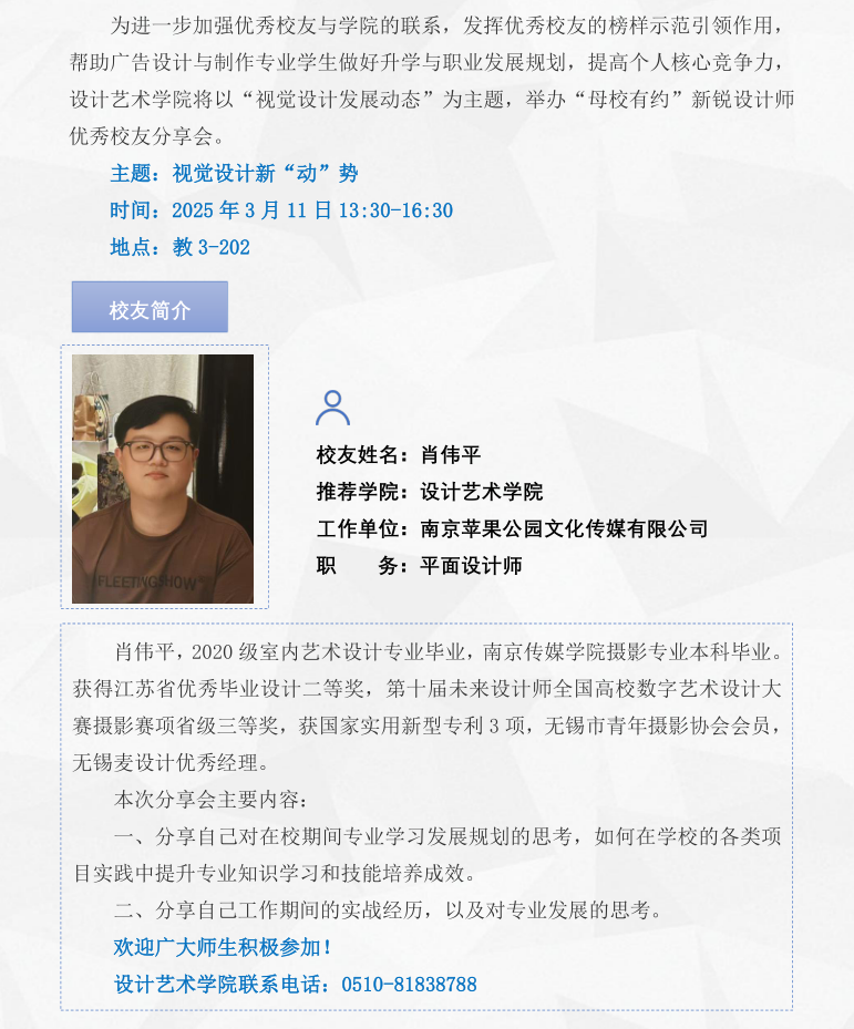 设计艺术学院举办“母校有约”的通知:视觉设计新“动”势