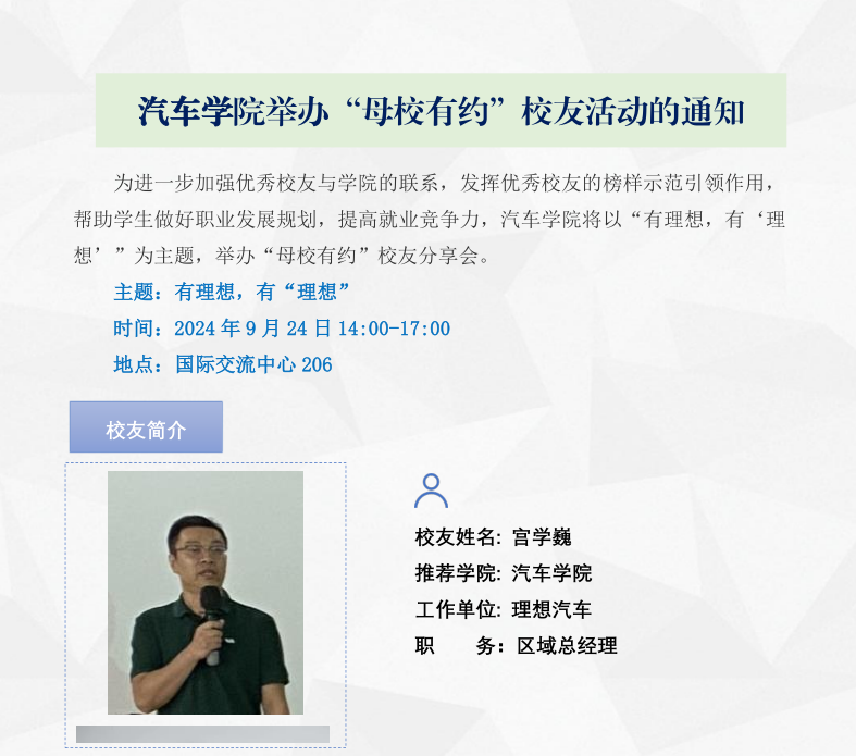 汽车学院举办“母校有约”校友活动的通知