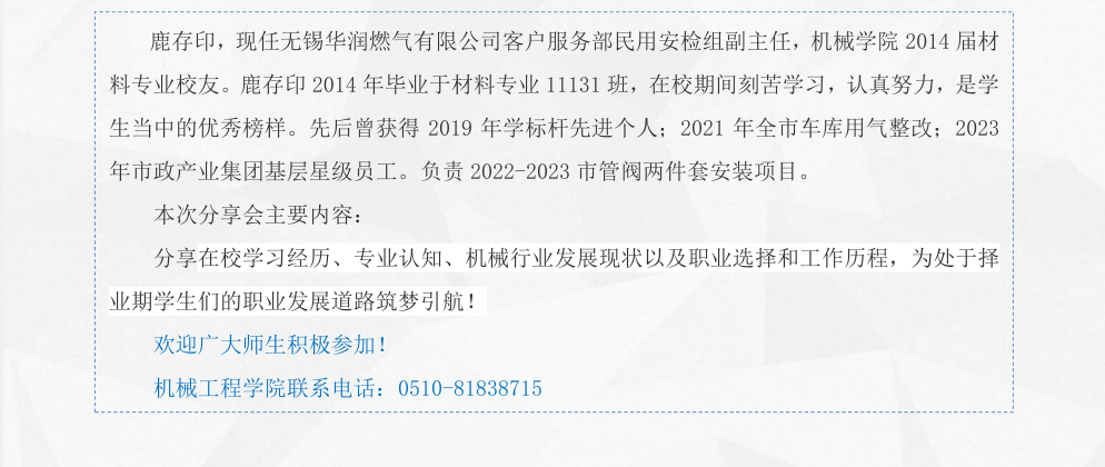 学校地址:江苏省无锡市大学城高浪西路1600号 邮编214121 校友办联系电话:0510-81838917 校友会邮箱:alumni@wxit.edu.cn