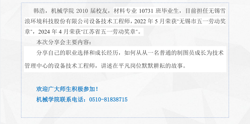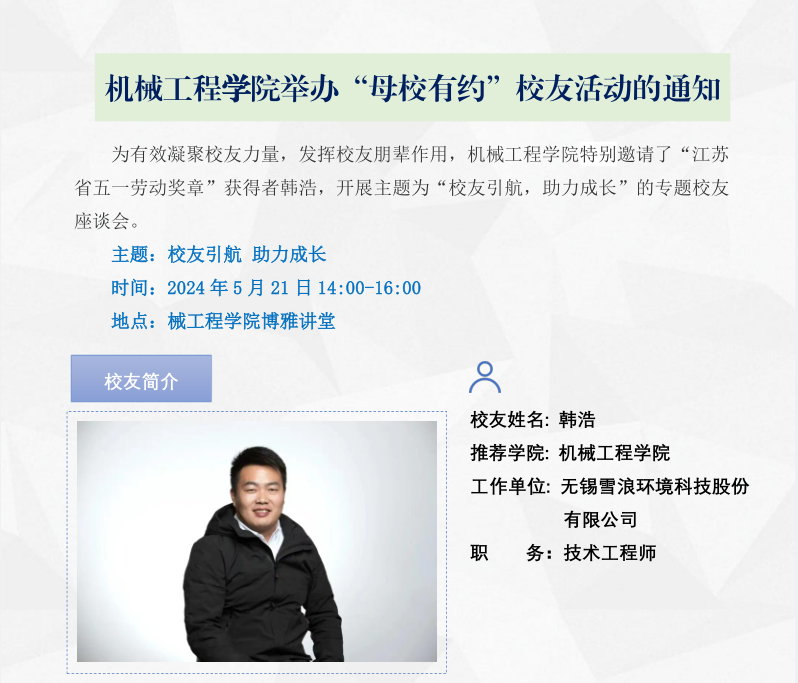 学校地址:江苏省无锡市大学城高浪西路1600号 邮编214121 校友办联系电话:0510-81838917 校友会邮箱:alumni@wxit.edu.cn