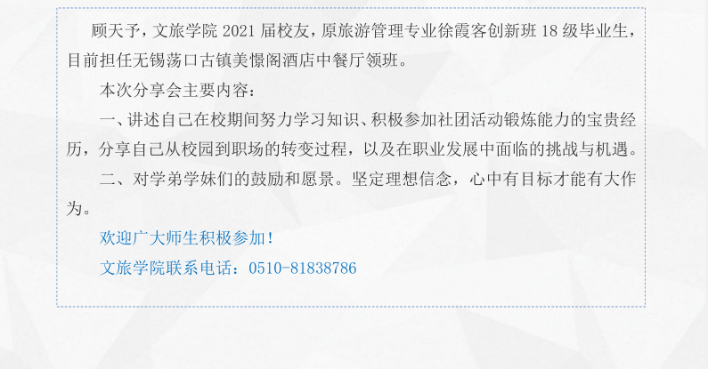 学校地址:江苏省无锡市大学城高浪西路1600号 邮编214121 校友办联系电话:0510-81838917 校友会邮箱:alumni@wxit.edu.cn