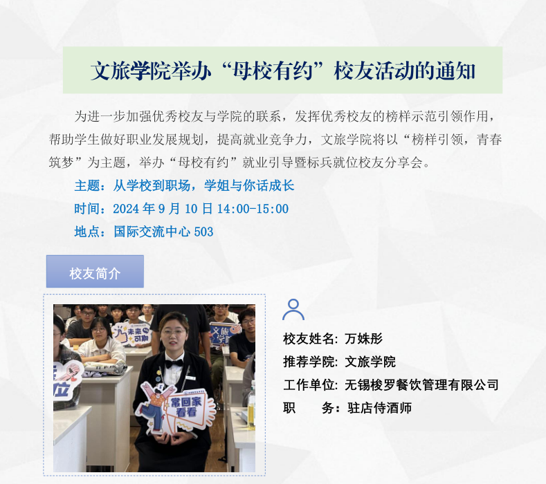 文旅学院举办“母校有约”校友活动的通知