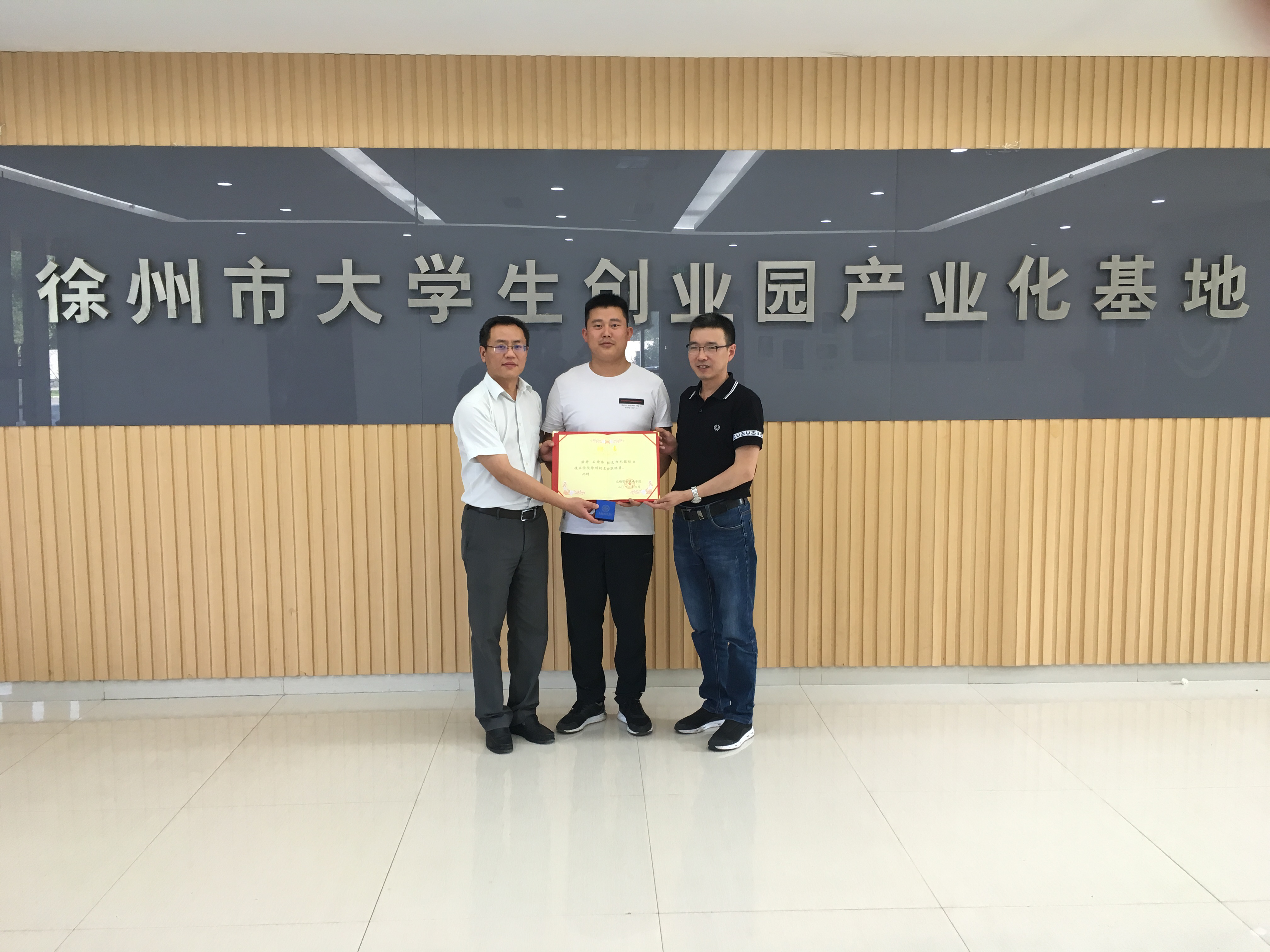 为积极响应学校校友会号召,扎实推进各地校友会联络和建设工作,管理学院党总支书记苗勇、校友工作办公室副主任翁爱祥等一行赴徐州市大学生创业园产业化基地走访我校2009届校友石晴伟,并聘其为校友会联络员。